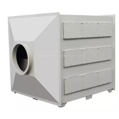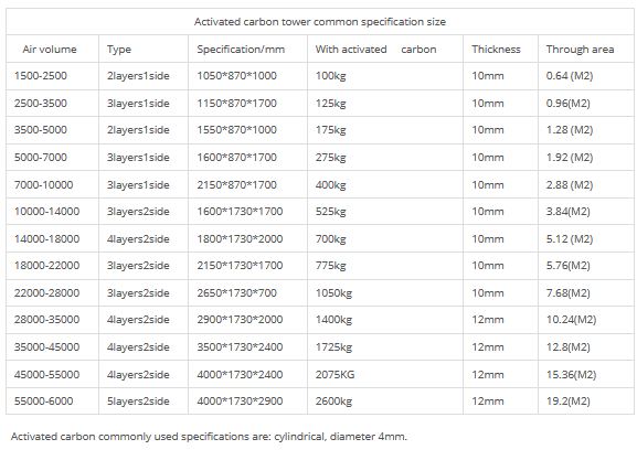 Activated carbon adsorption device is mainly composed of activated carbon,supporting layer.It has developed voids, large specific surface area and high adsorption capacity.Dust gas powered by fan, positive pressure or negative pressure get into the tower body, due to the unbalance and unsaturated molecular attraction or chemistry bond on the surface of the activated carbon,when contact with gas the solid surface can attract a gas molecule to make them strong and keep them on the solid surface.Then the pollutants are absorbed and get into filter system.