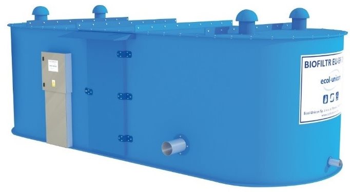 Ecol-Unicon active anti-odour filters work by letting air through the filter bed, which neutralises volatile impurities. The filer bed inside the device has excellent filtering effectiveness in removing odours and toxic substances. In case of using biomass filter bed odorous substances are removed by a specialist microorganisms, while in devices with activated carbon the absorption process of chemical compounds in done by a properly impregnated activated carbon filter. Clean air is directed straight into the atmosphere.