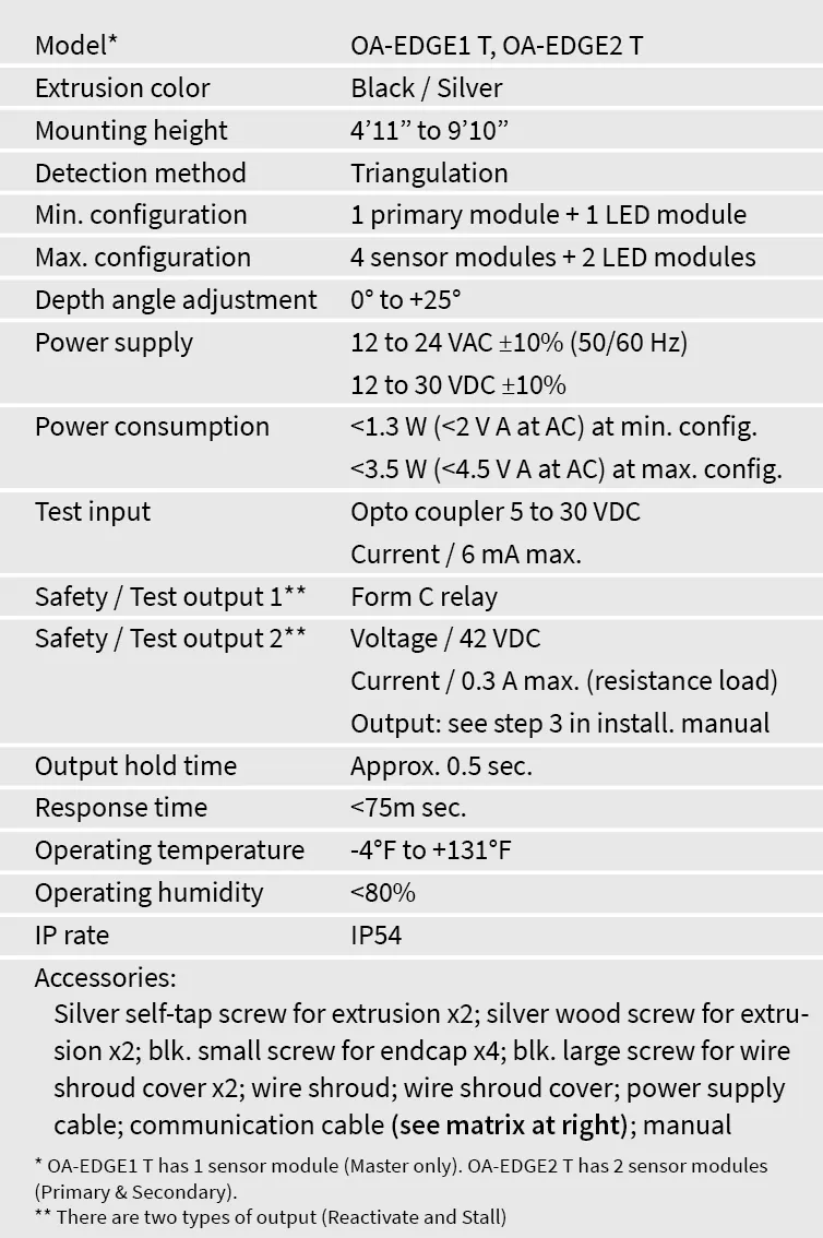 The OA-Edge T series is based on OPTEX`s Active Infrared Triangulation Technology. Due to the modular design, you can upgrade the safety level of the sensor by adding additional modules.