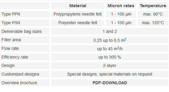 - Reduction of the disposal costs, because the filter bag can be burnt without ashtray deposite