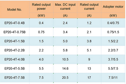 - Recommended input voltage EP10: 360VDC; EP20: 540VDC