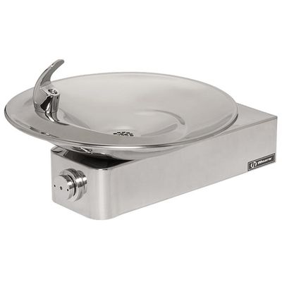 Model 1001HPS wall mounted barrier-free drinking fountain shall include an 18 gauge Type 304 high-polished stainless steel finish basin with integral swirl design, 14 gauge Type 304 high-polished stainless steel wall bracket, 100% lead-free waterways, push-button operated stainless steel valve with front-accessible cartridge and flow adjustment, polished chrome-plated brass vandal-resistant bubbler head with integral laminar anti-squirt flow, chrome-plated brass vandal-resistant waste strainer, vandal-resistant bottom plate, and 1-1/4" O.D. (3.2 cm) waste pipe. (P-trap and stop require rear access) REQUIRES MODEL 6700 PRICED SEPARATELY.