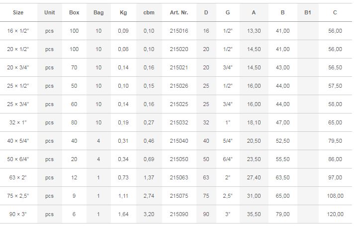 A fitting used for the transition from a welded part of a water or heating distribution system to brass screw joints and threaded fittings. Available both in Gray and Green colors. Standards: DIN 8077, DIN 8078, EN ISO 15874.