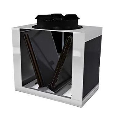 - Adiabatic mode: (normally in summer), air is subjected to a process of adiabatic pre-cooling before entering the cooler at the bottom. Once inside, it passes through the humidifier filling (closed air inlet top plates and water pump in operation).