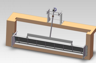 Adjustable over flow weirs are used for wide openings where the vertical travel required is not more than about 500 mm. The gate is hinged at the bottom, and is raised and lowered by means of a centrally mounted spindle which can be operated either manually, or by an actuator. As friction is very low, operating effort for tilting weirs is minimal.