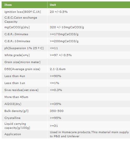 Zeolites possess a number of advantages over other builders during the production of detergents. With regards, zeolites display a very high product stability, regardless of the particular process employed (spray drying, granulation, extrusion etc). They prove inert when exposed to elevated temperatures, mechanical influences or alkalinity.