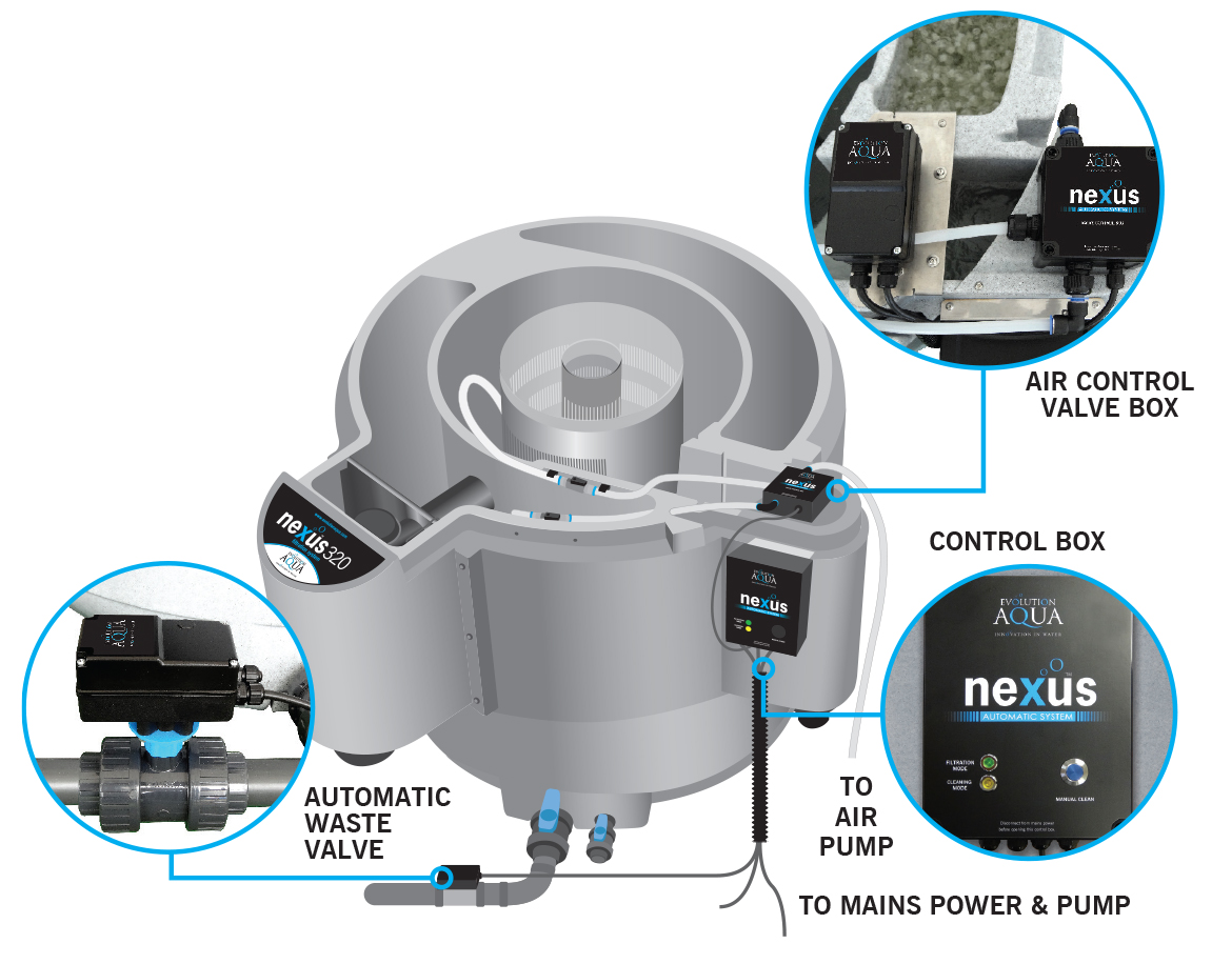 Continuing our long standing reputation for innovation, the Nexus Automatic System now enables Nexus owners to benefit from a fully automated cleaning cycle on their multi award winning Nexus filtration systems. Physically turning ball valves and manually switching pumps on and off will now be a thing of the past thanks to the Nexus Automatic System. All of the key processes that form the cleaning cycle are now controlled automatically with this easy to install kit.