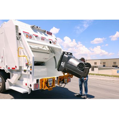 The Revolution is an advanced modern cart lifter from Bayne Premium Lift Systems. This patented design incorporates a sweeping action that automatically adjusts for uneven terrain, preventing operators from having to lift carts onto the lift plate. The Revolution® was specifically designed to offer the most ground clearance possible for rear load applications. This feature makes it a perfect choice for rear load applications with commercial container lift bars and provides the versatility to pick up both residential and commercial waste on the same route.