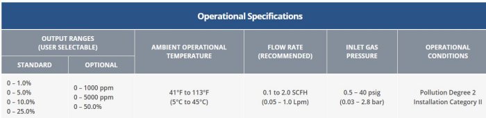 - 2 fully adjustable concentration alarms with configurable Alarm logic and Relay Contacts, featuring: