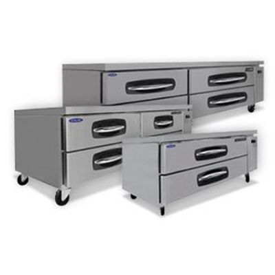 Nor-Lake refrigerated chef base stands provide dependable cold storage without taking up valuable workspace. Typically situated under griddles, grills or other cooking equipment, chef bases store meats, cheeses and other ingredients creating a complete food prep area. Many widths are available to fit your workspace requirements and a full marine drip guard is standard on most models to prevent spills from dripping over the edge. Upper and lower drawers accommodate up to 4″ deep 12″x 20″ pans as well as other sizes when optional horizontal dividers are used (pans not included).