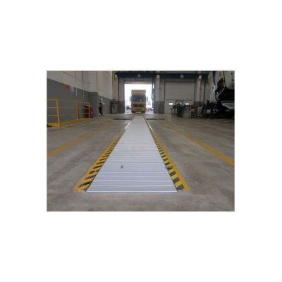 Sliding cover system for service pits in compliance with the applicable Safety Standard. Cover made of anodized extruded aluminum staves with trapezoidal section B=100 b=70 H=35 linked by a steel mesh chain and bearings Ø 30mm. Certified capacity load 1500 Kg/m² as required by the Safety Standard.