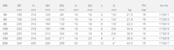 - PN 25 and PN 40 on request