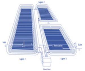 • Lagoons are designed to operate in series. ADS aeration tubing incorporates tapered grid coverage aeration, which allocates the amount of air based on the oxygen demands per each basin. This tubing releases a “curtain of air perpendicular to the flow that prevents of shortcircuiting.