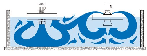 The Aqua MixAir system provides separate mixing with the AquaDDM Direct Drive Mixer and an aeration source such as the Aqua-Jet surface aerator or Aqua-Aerobic diffused aeration. The system has the capability to cyclically operate aeration and mixing to promote anoxic/aerobic and anaerobic environments with low energy consumption.