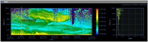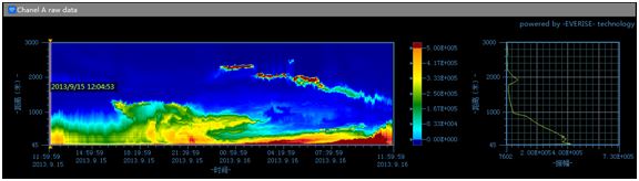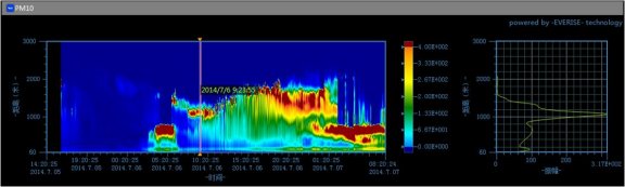 With a 532nm laser, EV-Lidar polarized Micro Pulse Lidar (MPL) could continuously monitor the aerosols distribution, analyze composition and spatial&temporal evolution of aerosols. EV-Lidar could also acquire such data as structure and evolution characteristics of PBL, vertical extinction coefficient and temporal evolution characteristics of atmospheric aerosols (or dust), height, layers and structure of clouds, atmospheric visibility and PM2.5/PM10 concentration. Meanwhile, EV-Lidar could monitor distribution of industrial dust emission, diffusion law of pollution resources over the city, and monitor weather process of haze and sandstorm. It has a great significance on monitoring atmospheric environment and studying atmospheric science.