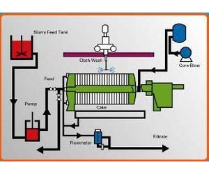 - Air blowing is applied to reduce cake moisture.