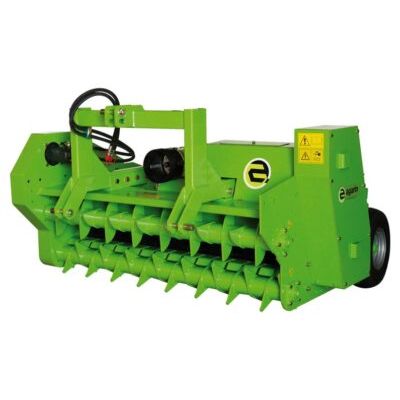 Pruned Reef Crushing Machine with double feeder and reversible, incorporating a new crushing system which allows working at speeds of 4 km/h in rows with medium-power tractors (100-140cv).
