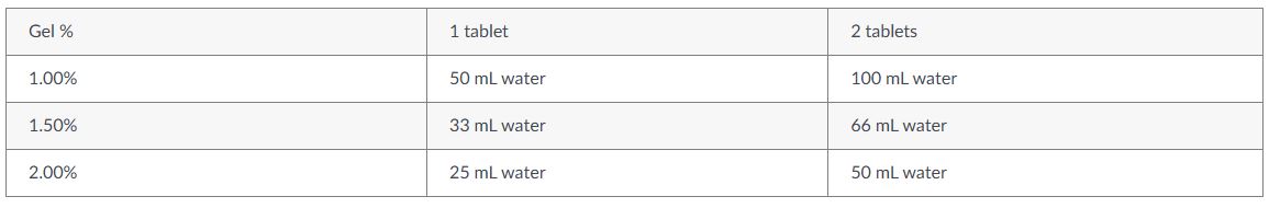 Producing an agarose gel is easier than ever before with the MIDORI Green Xtra Agarose Tablets: Just dissolve the Agarose Tablet in TBE or TAE buffer, heat up and pour the gel. MIDORI Green Xtra is already included in the tablet, eliminating the need to add an additional DNA stain.