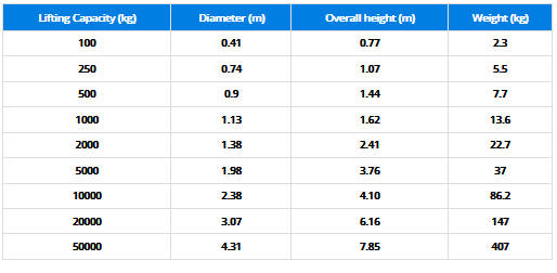 The shape of the lift bag is parachute/inverted tear drop with single point lifting contact. They come in varying capacity in tons of weight being salvaged. These are most commonly used in commercial and military salvage operations. They are best suited for salvaging of marine structures from deep waters. They come with a spring loaded relief valve for excess pressure release.