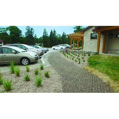 The herringbone cell pattern within the GEOPAVE units offers an aesthetic appeal. Create visual delineation with multiple colored stone to establish walk areas and barrier-free parking stalls. - High Stormwater Infiltration