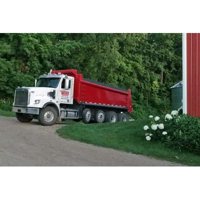 Wieser trucks haul 22 tons (16 yards) of material. We can spread material at customer site as dump allows. We must have proper clearance and room. Available at our Maiden Rock location only.