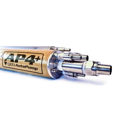 The AutoPump® AP4+ Aggressive Fluids Model features upgraded materials for many parts to further extend the service life of the pump and to broaden the range of conditions each model can be used in. All nonmetallic internal parts are PVDF*, a high-grade engineering plastic with higher strength at elevated temperatures and extremely broad chemical resistance, including acidic and oxidizing cleaning agents sometimes used for pump maintenance. The stainless steel parts have been upgraded to 316-grade for improved corrosion resistance. QED’s patented AutoPump® AP4+ was designed specifically to handle difficult conditions reliably and safely, including hydrocarbon (LNAPL and dissolved phase) remediation, landfill leachate and methane condensate pumping, solvent (dissolved phase and DNAPL) cleanup, suspended solids, silts, corrosives, and high viscosities, along with high temperatures and frequent starts and stop