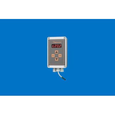 X-TH : Microprocessor operated thermostat (one relay): on/off control of heating systems (hot air generators, aerotherms). Watertight (IP55). Programmable differential between on and off. It stores in memory the minimum and maximum of temperature starting from the initialization. Visualization of the measured temperature. Temperature adjusting from the keyboard. The temperature sensor is included. X-TH-2P : Two points thermostat (2 relays): low temperature and high temperature switching. On/off heating and ventilation control with one equipment. The temperature sensor is included.