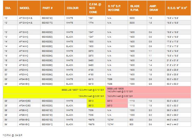 - 36″ fans are variable down to 120 volt only