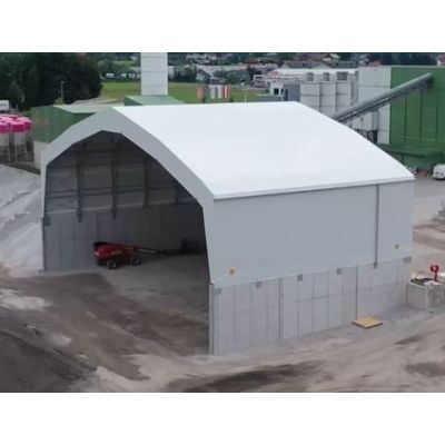 Storage halls with membrane covering can be set up directly on the natural ground. Depending on the conditions, no concrete foundations are necessary. The storage halls can also be erected on concrete walls and concrete blocks.