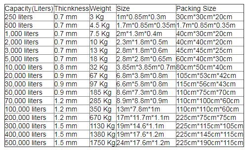 Our products have pillow tank, water bladder ,fuel tank ,fish tank and etc.. Commercial Potable PVC/TPU Marine Large Pillow water tank provide customized service, we have material of TPU, PVC etc. for your choice. TPU is FDA approved material, it`s most suitable for human drinking, also for fuel storage. PVC is suitable for animal water drinking,farm use etc. Thickness we provide 0.7mm , 0.9mm , 1.0mm, 1.2mm, 1.5mm for choice. In a word ,It can be-used to store Industrial water, Fire water, Fire fighting, Rainwater harvesting, Irrigation water, Humanitarian, Concrete mixing water, Drinking water, Slope green water, Sewage water storage and Oil well cementing.