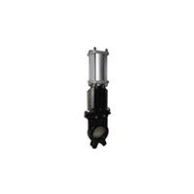 Air actuated knife gate valves. Model:GLK673 DN50-DN900. Solid One Piece Cast Body, Replacement Seat,Uni directional Type. Designed & Tested to MFS. Operated type:Double acting Cylinder. Materials of construction. Body:Ductile iron GGG40,Stainless Steel,Special materials. Knife:SS304,SS316(Solid solution treatment). Stem:ANSI 1045+CR as standard,17-4PH for optional. Seat: EPDM as standard, NBR, PTFE, Viton, Metal. Connection: EN1092 PN10, JIS 10K.