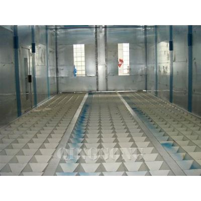 Air blasting room or Air blasting cabinet with pneumatic media reclaim system – An economical alternative, vacuum reclaim systems utilize cyclone separators to recover usable media to the blast machine, while dust and broken-down media are drawn out into the dust collection system. The media is vacuumed up, cleaned and returned to the blast pot. The system automatically cleans recyclable abrasives, through the use of a cyclone separator, and returns the clean, good media back to the blast machine. Also known as sweep-in or pneumatic recovery systems, Qinggong Vacuum Reclaim Systems rely on the use of cyclone separators and work best with lighter abrasives such as glass bead, aluminum oxide, garnet or plastic. We have air blasting equipment and blast room for sale.