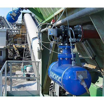 Air blaster / air cannon AIRCHOC® acts directly and preventively on the product; Compressed air (from 4 to 400 L) is instantly released through a suitable outlet port; This is equivalent to a blast.