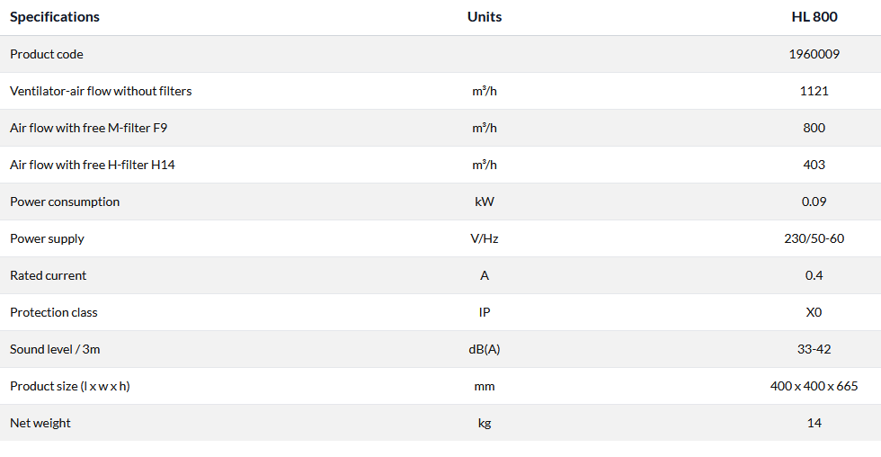 Dantherm - Model Heylo HL 800 Virus -Air Cleaner