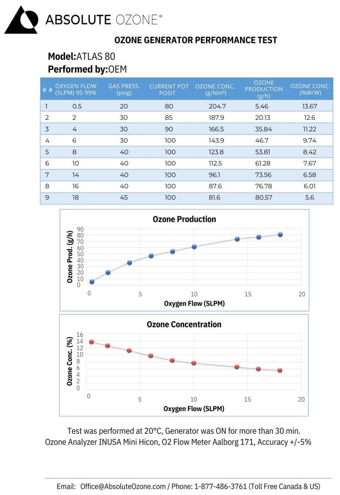 - Ozone Production: 80 g/h