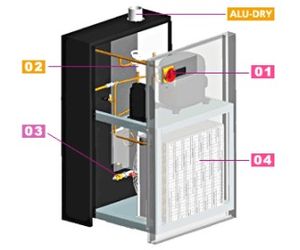 The ACT range (Aluminium Cooling Technologies) uses a highly efficient cooling module that has a direct effect on reducing energy consumption and pressure drop. The main advantages are: low pressure drop even with load variances and a constant pressure Dew-Point with differing load conditions.