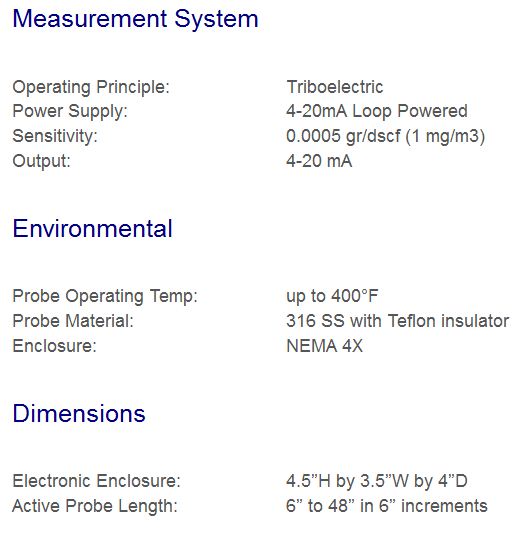 The Model 201LP system can detect a particulate loading as small as .0005gr/dscf (1mg/m3). There are five selectable sensitivity ranges to cover every requirement.