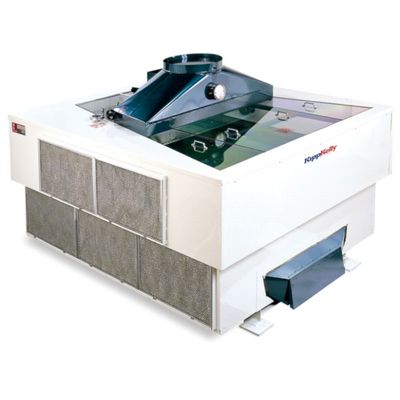 The remote fan is located away from the density separator and provides suction to the product on the deck media. Destoners and Gravity Tables can be manufactured in a Vacuum Configuration. Air volume is controlled with an air Valve on the duct between the suction fan and the density unit.