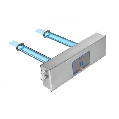 UV-DUCT-FL-NX family includes a range of flange modules with two “U” lamps of different sizes (from 20 to 50 cm) and power ratings (from 70 to 190 W) protected by a stainless steel grid.
