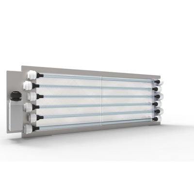 The air flow must pass entirely through its “grid” of UV-C lamps placed on its Stainless Steel AISI 304 body.