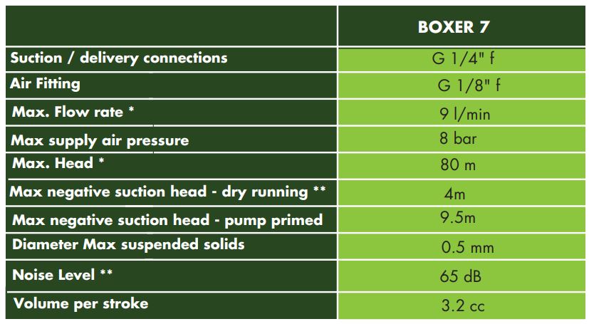 The Boxer range are air-operated double diaphragm volumetric pumps, ATEX - IECEx certified, constructed in Polypropylene or PVDF in the plastic version or in aluminum or AISI 316 L for the metal versions. Boxer pumps are ideal for pumping liquids with high apparent viscosity, even if containing suspended solids. The Boxer series of pumps are self-priming, have dry run operation, and adjustable operating speed making them extremely versatile and suitable for continuous use. The vast range of materials available for the parts in contact with the fluid, such as pump casings and manifolds, diaphragms, balls, ball seats and o-rings, makes them compatible with any type of fluid present on the market.