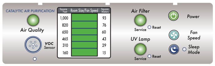 - Contains a VOC sensor which detects the presence VOCs. If VOCs are detected, the Air Exchange Monitor (AEM) automatically adjusts fan speed to reduce them.