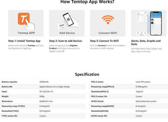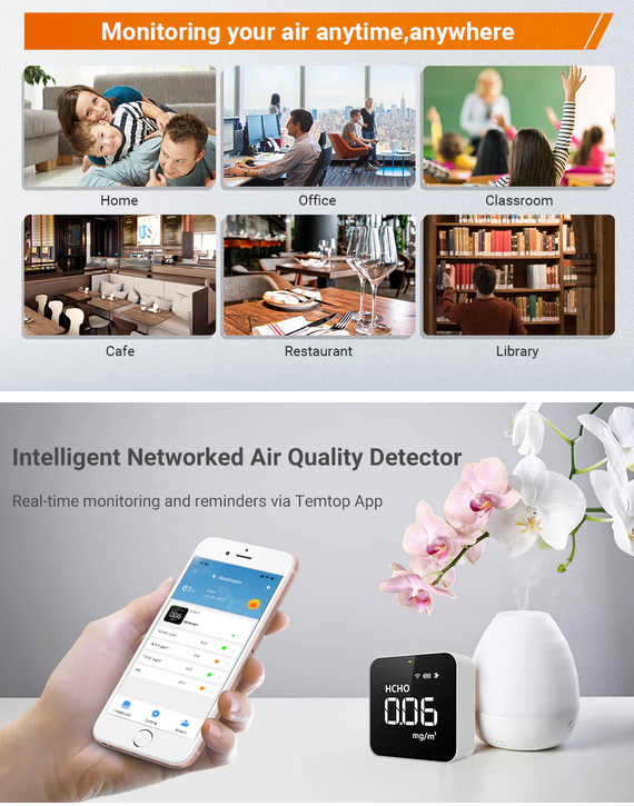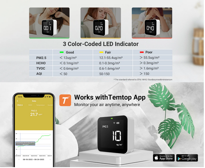 Temtop M10i WiFi Air Quality Monitor AQI Monitor Meter for PM2.5 AQI TVOC HCHO Formaldehyde Detector Real Time Recording