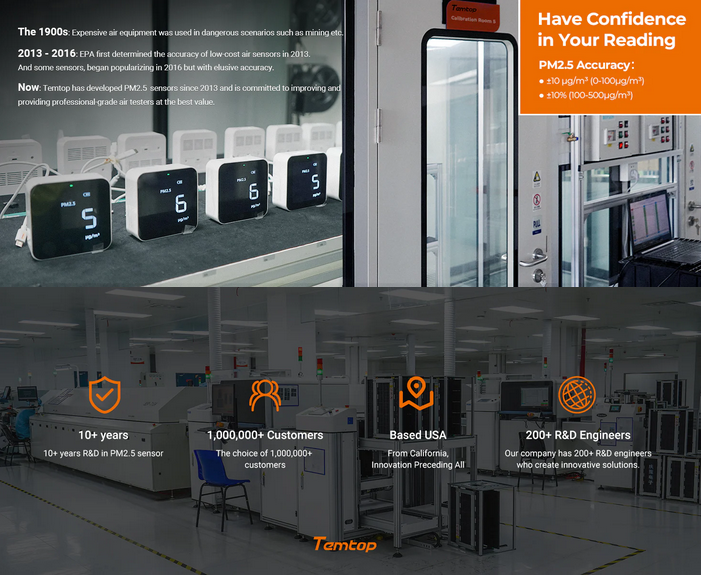 • Accuracy: ±10μg/m³(0-100μg/m³); ±10% μg/m³(others)