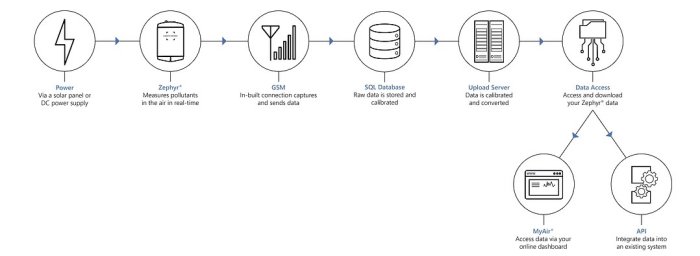 Zephyr® air quality data can be directly integrated into third party systems via our API in a range of formats including Json and csv.