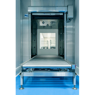 The operating principle is based on the action of filtered air jets, HEPA degree according to ISO EN 14644-1 standards, which at a 25 m/s~ speed cause the detachment of inert or inactive particles keeping them off of materials passing through the shower. Material can pass through the shower in both directions with different procedures. A specific software ensures the ideal process conditions.
