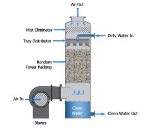 Counterflow stripping columns are the most common design because of the high efficiencies that can be achieved, combined with the low air volume required.