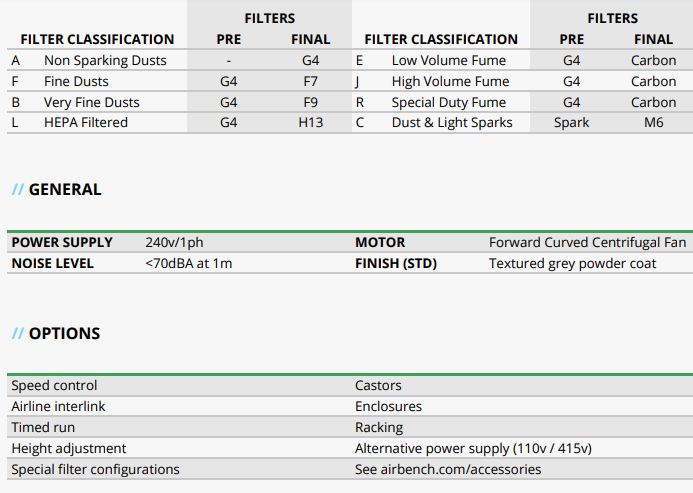 AirBenchModel FP -Heavy Duty Downdraught Bench