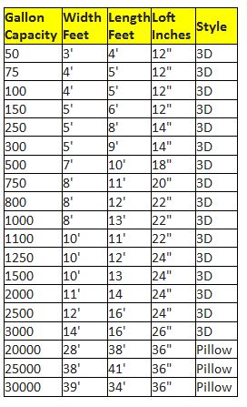 - Bladders under 5,000 gallons made with 22 oz fabric