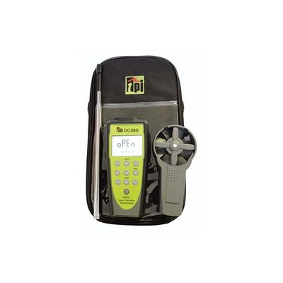 DC580 Airflow Meter Hot-wire & Vane Anemometer. Measure Velocity & Temperature Simultaneously; Record Data with TPI Android & iOS Smart Phone Apps; Measure CMM without a hood! Measure air velocity and temperature simultaneously. Measure cubic meters per minute (CMM) without an air-balance hood. Field replaceable smart hot wire and vane probes. Communicate with Android & iOS Smart Phones using Bluetooth LE. and TPI App. Record minimum, maximum & average. Multiple measuring units: m/s, km/h, ft/min, knots, mile/h. Rubberized boot with magnets for hands-free operation. Dual display with backlight.